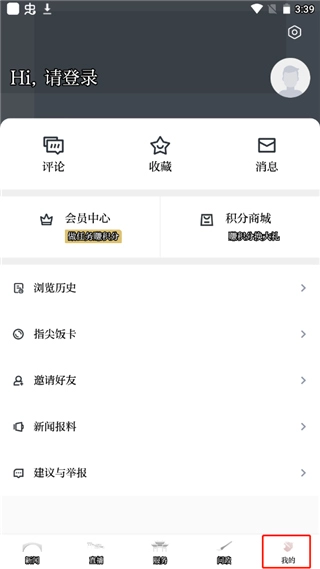 5、点击我的,里面有评论、收藏、消息、浏览历史等功能。