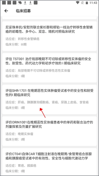 3、页面就会显示很多的临床试验,选择其中一个。