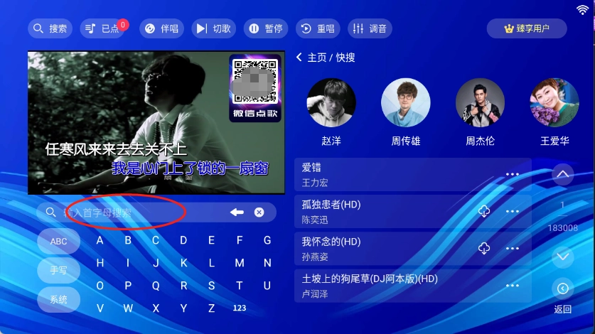 4、点击歌曲,就可以智能点歌,然后再已点歌曲板块,查看已点歌曲.