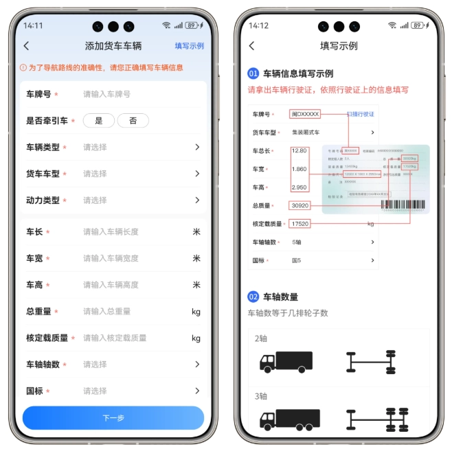 车辆信息可参考右上角填写示例,凡是带*标志皆为必填项,请您如实填写。