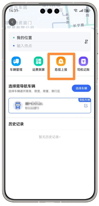 8、新增限行措施、蒸洗罐网点、危化品停车场等信息,可选择【危信上报】,便利全国危险品驾驶员出行。