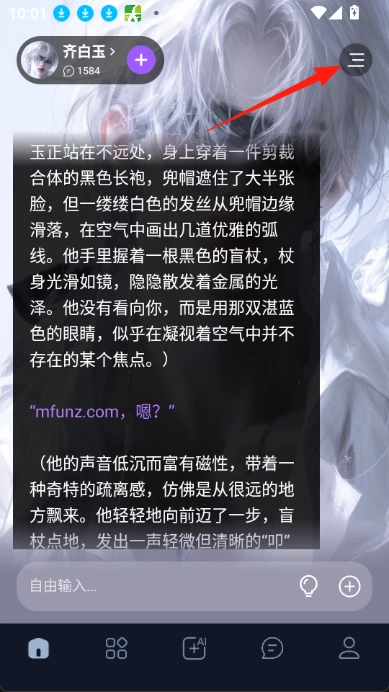 1、在首页对话框,点击右上角三个横杠。