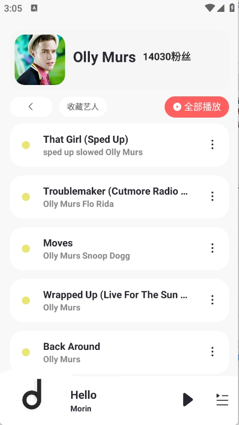 魔音MORIN,汇集了很多音乐资源类型,提供了来自个大音乐平台的海量资源,包括酷狗音乐、QQ音乐、网易云音乐、酷我音乐等平台的歌曲,可以设置单曲播放、循环播放还是随机播放,满足不同用户的听歌需求,另外还会根据用户的喜好智能精准推荐,想听的歌曲基本上在这里都可以找到。