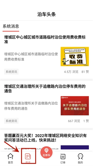 3、在资讯板块可以看到各种最新泊位停车信息。
