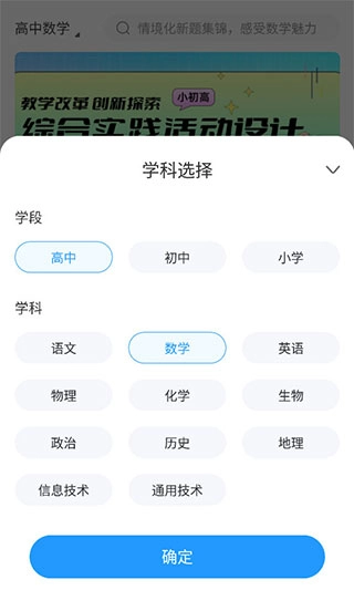 2、点击坐上角,可以选择需要的学段和学科,进行检索分类。