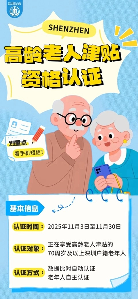 【11月深圳高龄老人津贴资格认证即将截止】