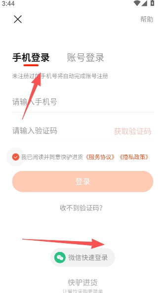 2、通过手机号码登录或是微信的方式完成快捷登录注册。