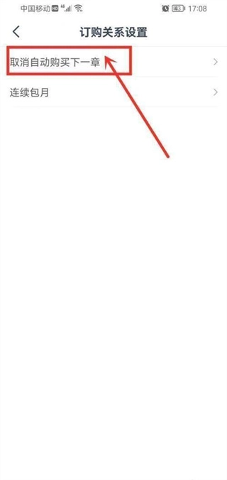 4、最后点击过后进入到订购关系设置的页面中我们点击【取消自动购买下一章】即可。