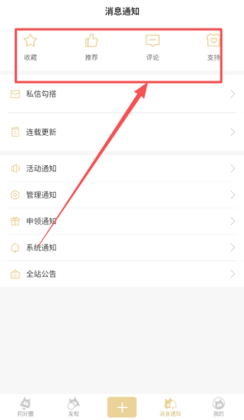 2、首页,消息通知栏目每天更新最新动态资讯内容展示,还有一些关于收藏页推荐消息的评论互动,你可以点击查看。