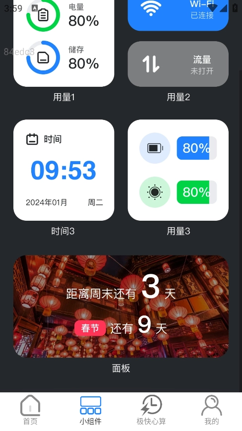 1、打开软件点击底部的小组件