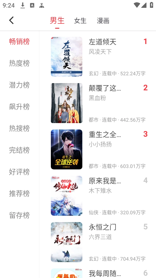 3、更有【排行榜】让你阅读最受欢迎的小说;