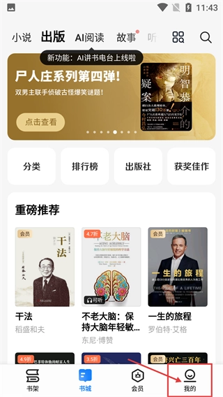1在书城页面,点击底部导航栏的【我的】选项,就能进入个人中心页面,在那里可以找到账户信息、阅读时长统计等各项功能的入口。