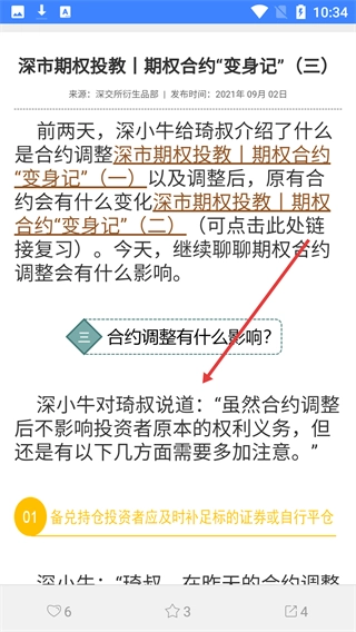 4在资讯详情页面,用户能够阅读相关内容以知晓期权合约调整所带来的影响等信息,同时还可以借助页面上的功能开展互动或者进行收藏操作。