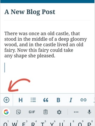 2、可以编辑任何博客文章或点击添加新按钮来创建新的博客文章。这将启动WordPress应用程序的内容编辑器。在这里,您可以使用手机的原生键盘写一个新帖子,底部有一个格式工具栏