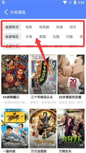1、通过分类筛选页,按影片类型或地区等条件选择感兴趣的内容。