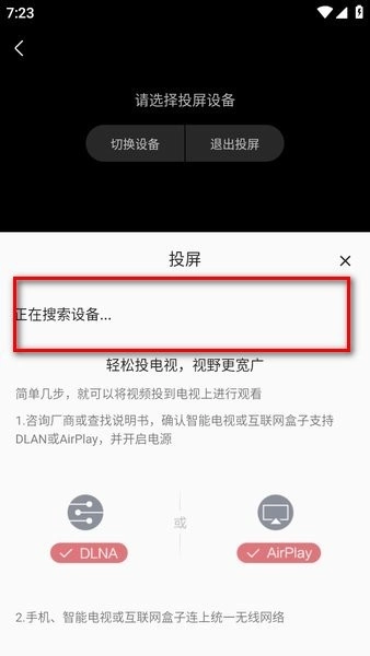 然后就会搜索设备,注意手机和电视要在一个wifi下才能搜索到;