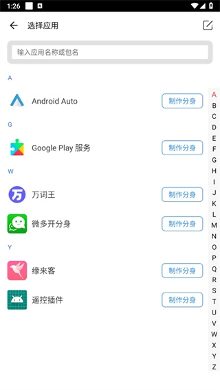 2、接着进入选择应用的页面,挑选一个应用后点击【制作分身】按钮。