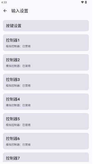 2、点击“输入设置”选项,该界面可对模拟器的操作进行配置。接着点击其中的“控制器1”,选择与之对应的模拟控制器,即可激活手柄并完成按键配置。