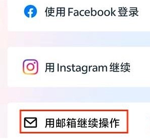 1. 安装好Oculus后将其打开,接着点击通过邮箱进行后续操作。
