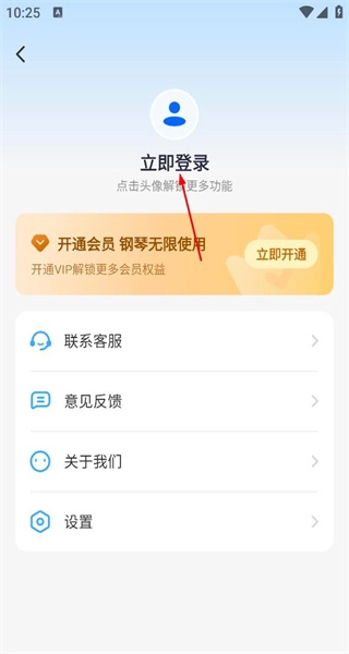 1启动应用程序后,浏览包含钢琴在内的各项功能选项,接着点击界面右上角的人物形状图标,即可跳转至个人中心界面。