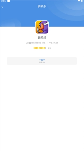 3、小编拿近期爆火的鹅鸭杀游戏举例,在顶部搜索框输入“鹅鸭杀”,就能在下方看到这款游戏的评分和厂商信息,点一下一键按钮就行。
