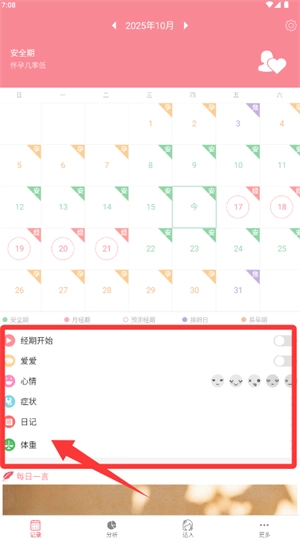 3、通过日历记录功能,可详细记录每日身体症状与情绪状态。