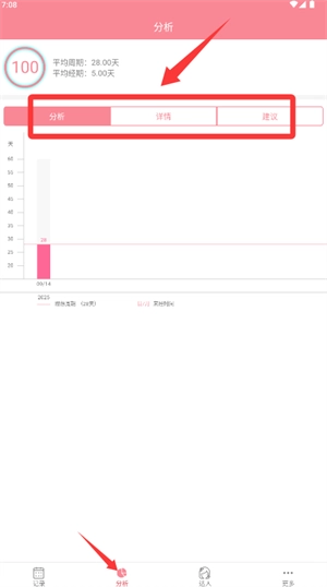 4、切换至分析板块查看周期统计与个性化健康管理建议。