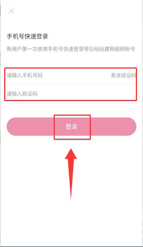 2、在登录页面填写手机号并输入验证码,完成账户验证流程。