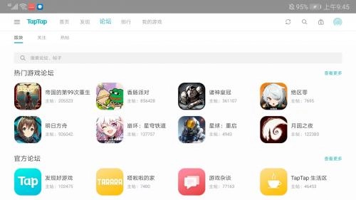 5、进入【论坛】界面,包括热门游戏论坛、论坛和个人论坛等不同的论坛,玩家可以在这里交流分享,