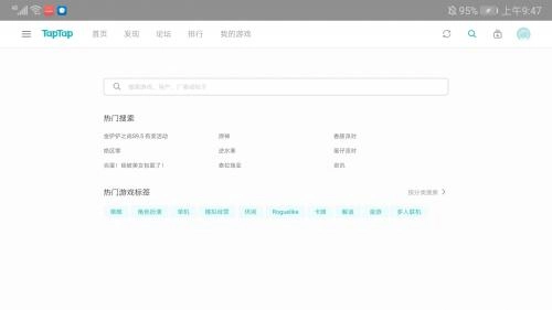 1、打开TapTap HD版,进入应用主界面后,能看到【首页】【发现】【论坛】【排行】【我的游戏】这些频道,大家可以挑选一款自己感兴趣的游戏。