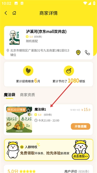 1联合众多品牌商户,把当日未售罄的品质食品分装成惊喜福袋,用实惠的价格分享给消费者,让闲置资源得到更合理的使用。
