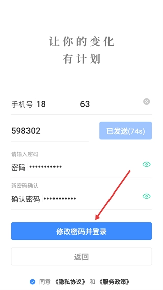 4在指定区域依次录入个人手机号、系统发送的验证码,以及新设置的密码(需再次输入确认),随后点击界面上标有“修改密码并登录”的功能按钮,即可完成密码的重新设定并同步登录该账号。