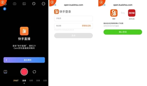 2接着点击「快手直播」选项,再点「前往授权」按钮,系统会自动跳转到快手应用或快手登录界面(若手机没装快手),登录快手账号后点「确认登录」完成授权就行。