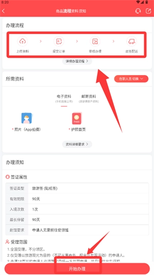 4、仔细阅读办理流程与材料清单,确认无误后点击开始办理按钮。