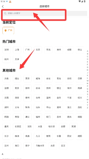 2在城市选择界面,用户既能利用搜索功能快速定位目标城市,也可从热门城市推荐或其他城市名录里直接挑选所需城市。