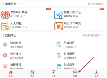 1、打开软件后,点击行情界面。