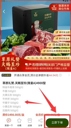 4、最后确认所选商品详细信息,点击立即下单完成购买。