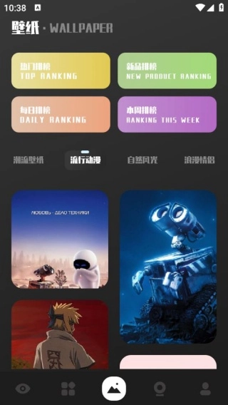 3、还能根据热门排榜、新品排榜等分类以及潮流、动漫等风格筛选壁纸。