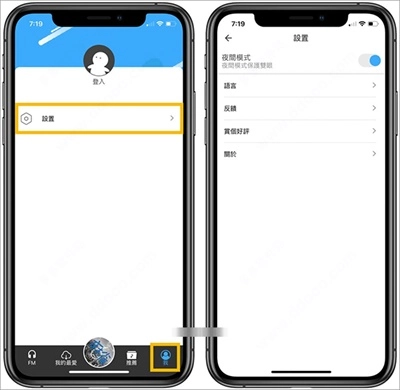 7在最后一项的设置功能中,用户可以选择开启“夜间模式”,该功能的作用是降低屏幕亮度,而非将音乐播放器的整体背景切换为深色主题;若需切换至其他语言版本,同样可在设置界面中进行相应调整。