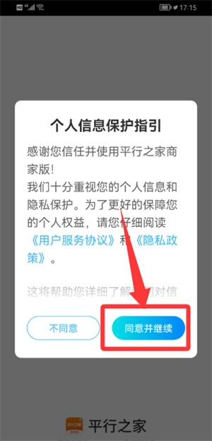 1、首先在个人信息保护指引页,点选"同意并继续"按键。