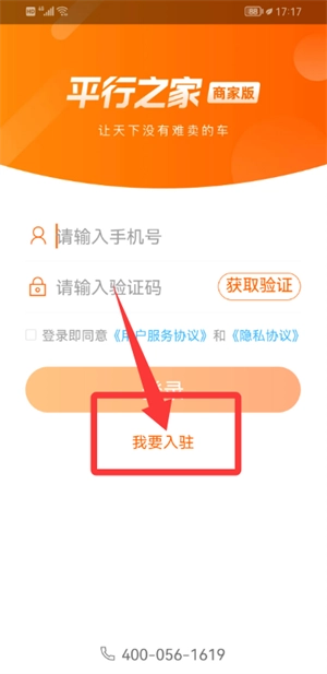 3、跳转至在登录界面时,点击"申请入驻"功能按钮。
