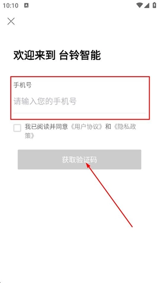 2在台铃智能系统的登录页面,填写您的手机号码后,点击用于获取验证信息的按钮。