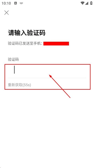 3、进入验证码输入界面后,填写收到的验证码,即可完成登录流程。