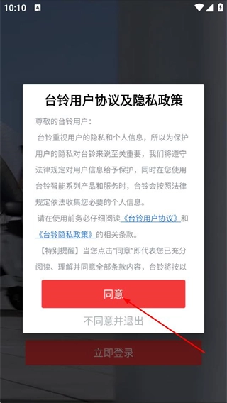 1、在弹出的窗口里点击同意用户协议与隐私政策,即可进入登录页面。