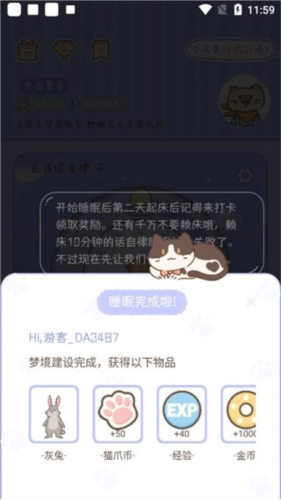 8、睡眠完成即可获得奖励。