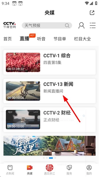 2进入央媒相关页面后,找到并点击CCTV-13新闻频道对应的直播选项,即可进入该频道的直播观看界面。