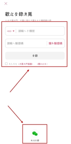 2、接着输入自己的手机号和验证码完成登录即可,新登录账号会自动完成注册;若你希望通过微信登录,也可以选择页面最下方的第三方登录方式。
