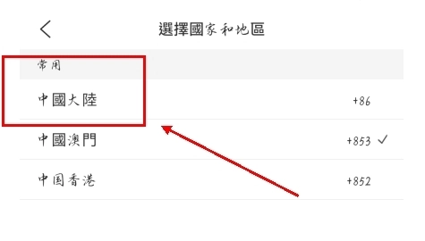 2、选择大陆地区对应的+86号码前缀,接着按照上述步骤继续操作即可。