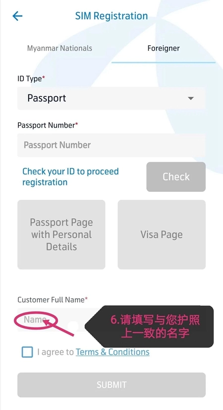 若您的国籍非缅甸,需准备好仍在有效期内的护照个人页照片并上传,随后填写基础信息并提交即可。