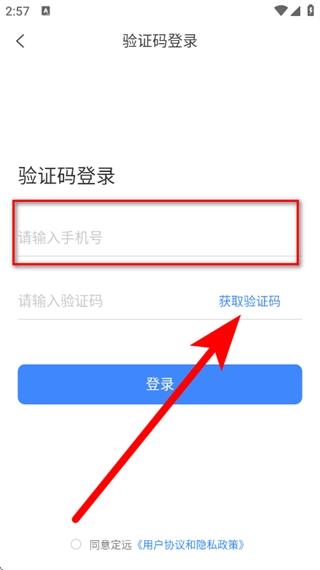 3、在验证码登录页面,输入手机号,点击获取验证码。
